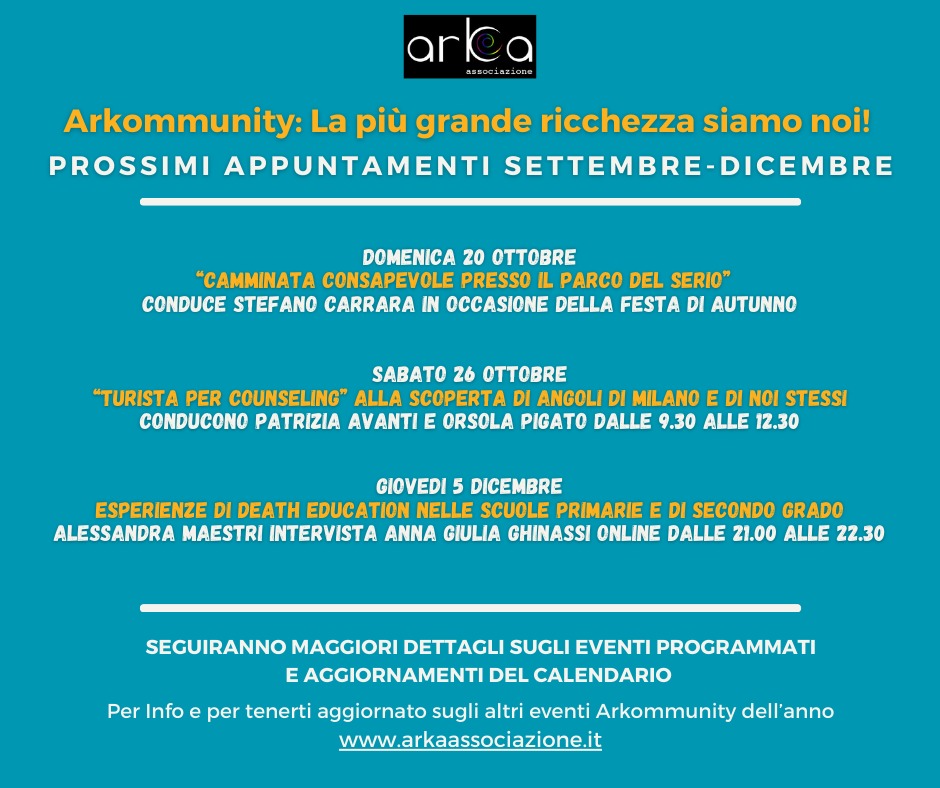 Ecco di seguito il calendario EVENTI ARKOMMUNITY di Settembre / Ottobre / Novembre / Dicembre 2024
