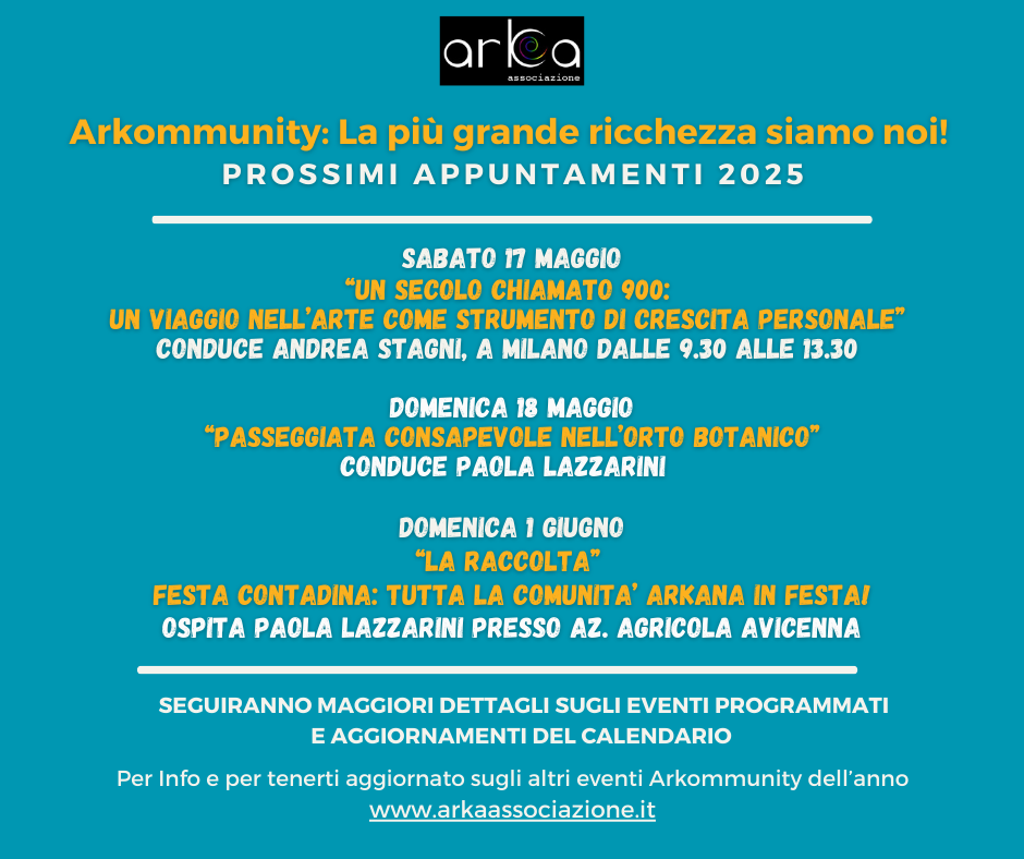 Ecco di seguito il calendario EVENTI ARKOMMUNITY 2025